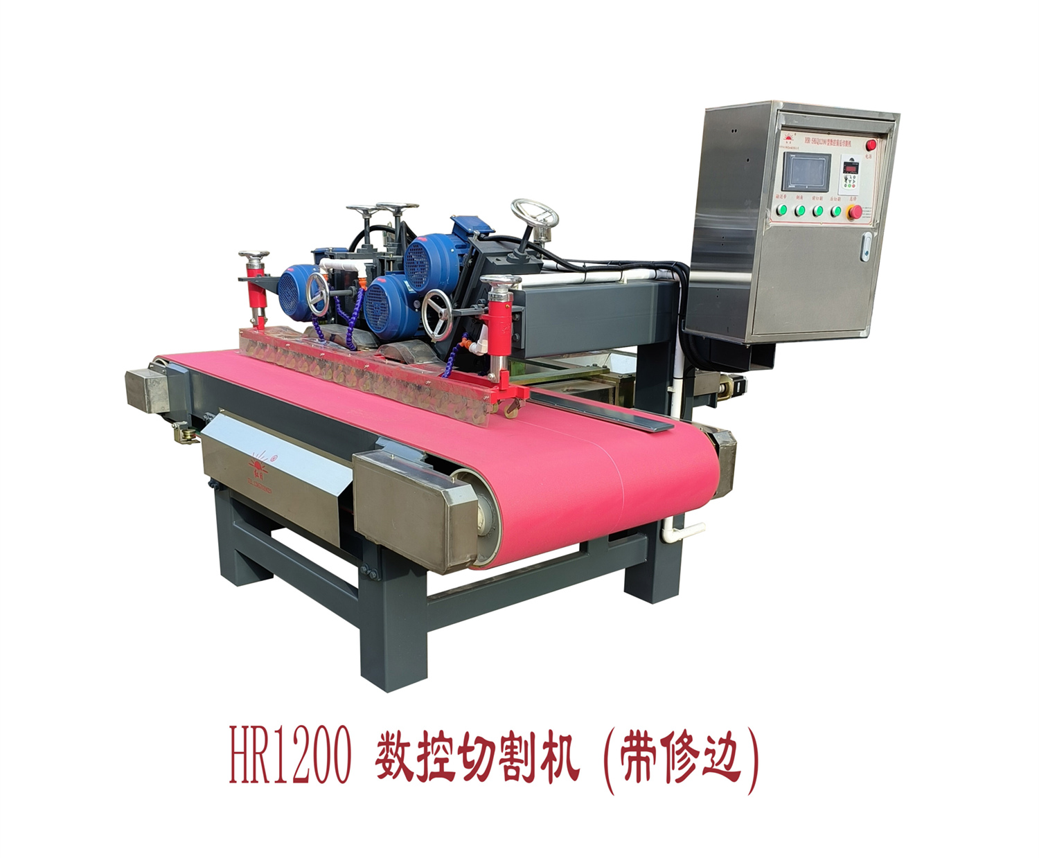 HR-1200型前后刀数控切割机(带修边)是一款用数字输入尺寸定位的切割设备,整机设计合理,定位部分采用进口滚珠丝杆高精度步进系统配合而成,运行平稳精确度高,误差达到(0.1mm)左右,且操作方便,不用人工量尺,只在键盘上输入所需尺寸。切割完成后还自带修边磨头,可以切割修边一次性完成,效率更高,更省人工,该产品已经大量投入市场,获得广大客户一致好评!